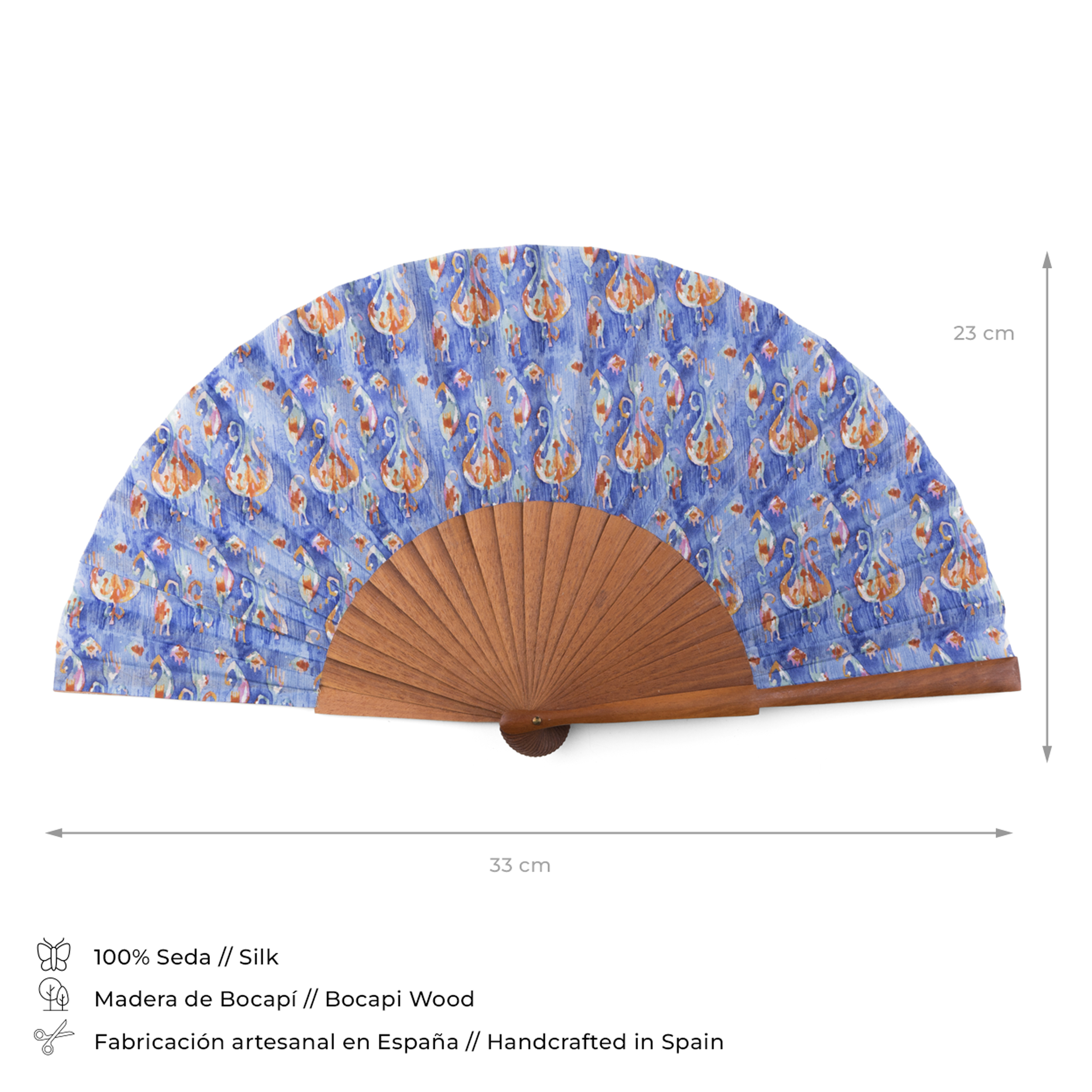 Nuestros abanicos están fabricados con madera 100% natural. Vetas, nudos y variaciones del color son propios del trabajo con materiales nobles, y no defectos.