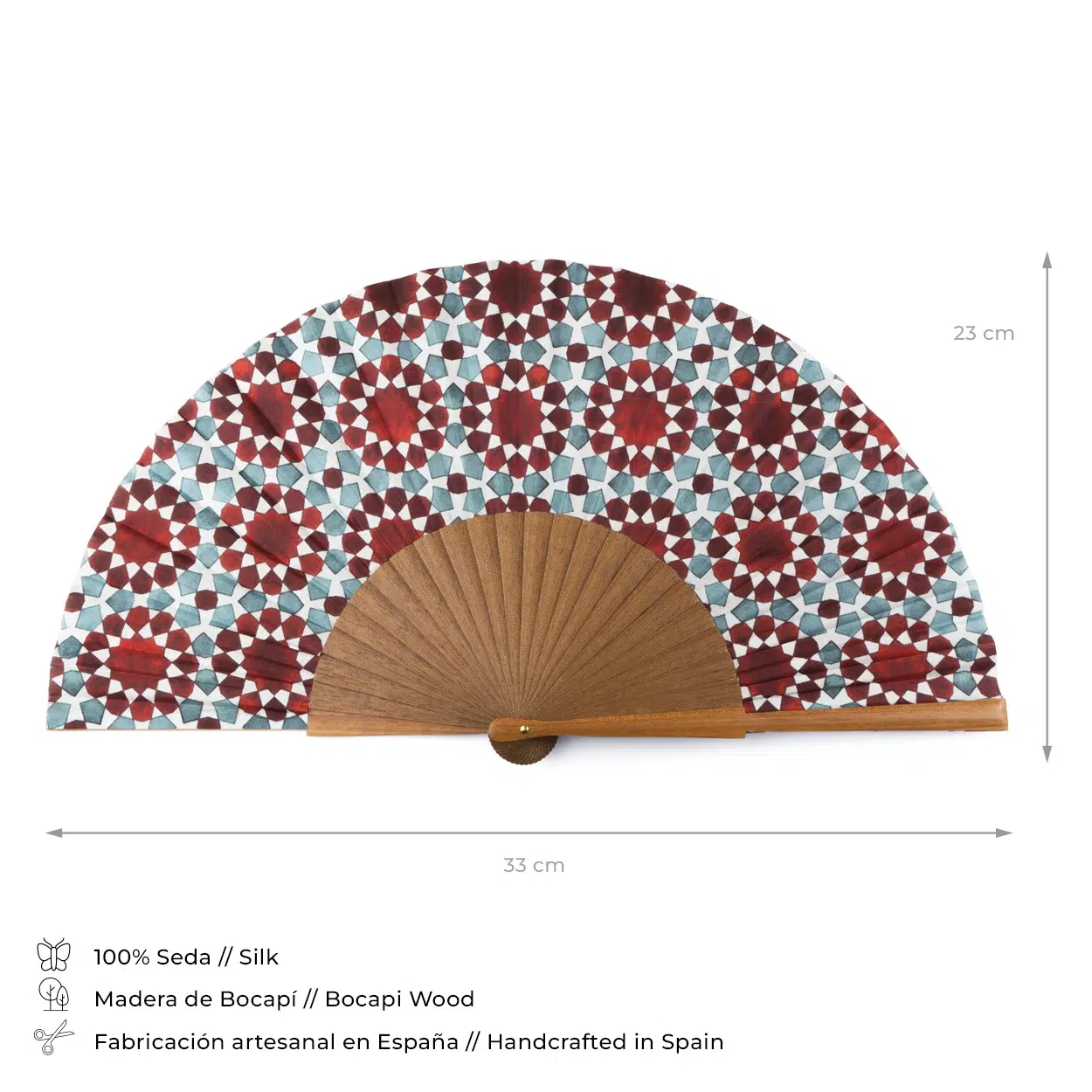 Nuestros abanicos están fabricados con madera 100% natural. Vetas, nudos y variaciones del color son propios del trabajo con materiales nobles, y no defectos.