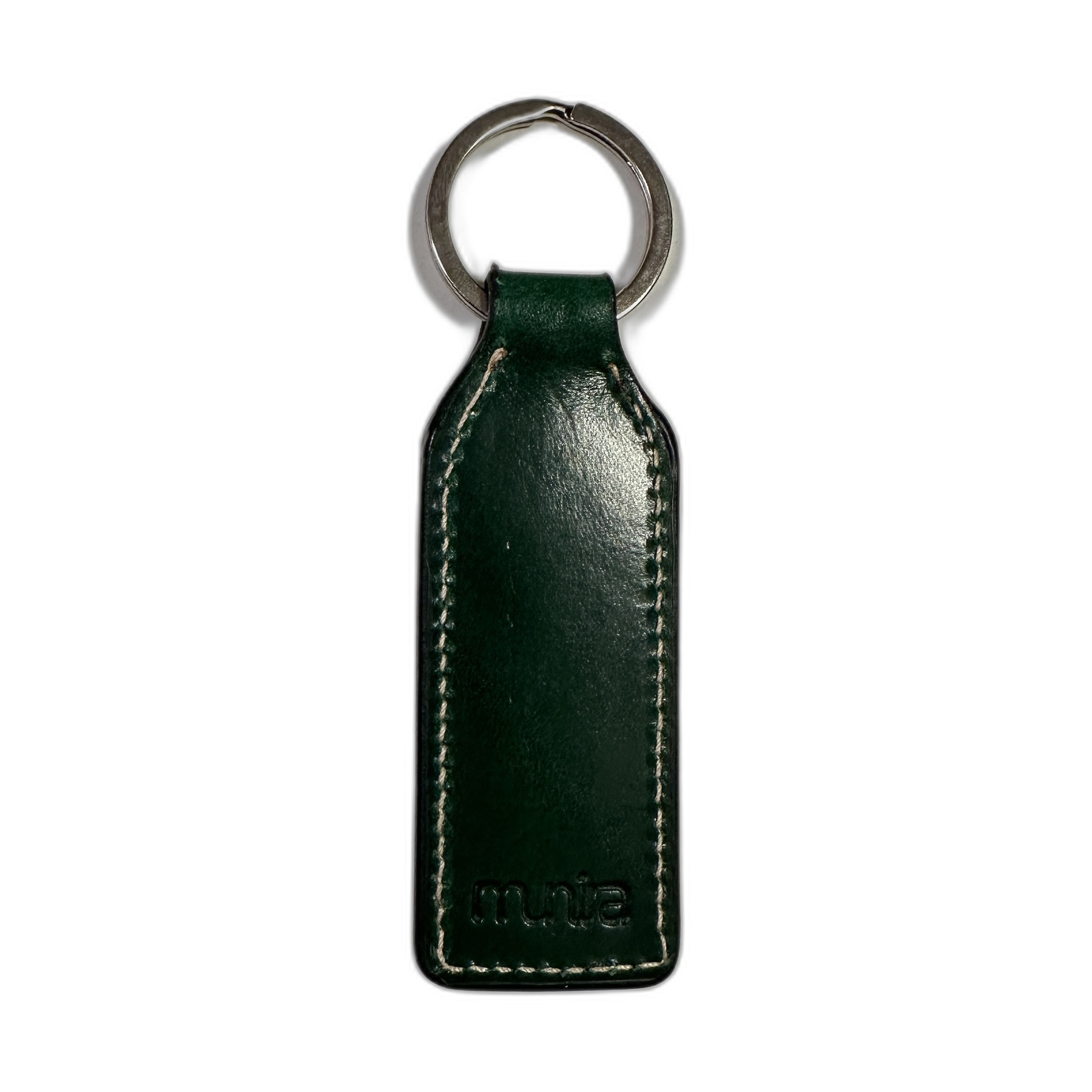 Llavero de piel de curtición natural fabricado en España y grabado con calor.