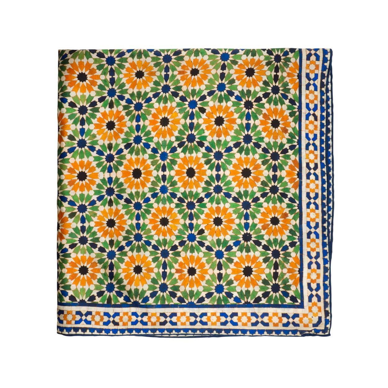 Silk satin scarf inspired by the geometries of Al Andalus.