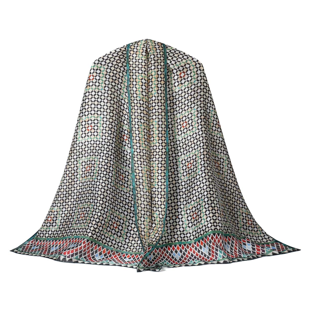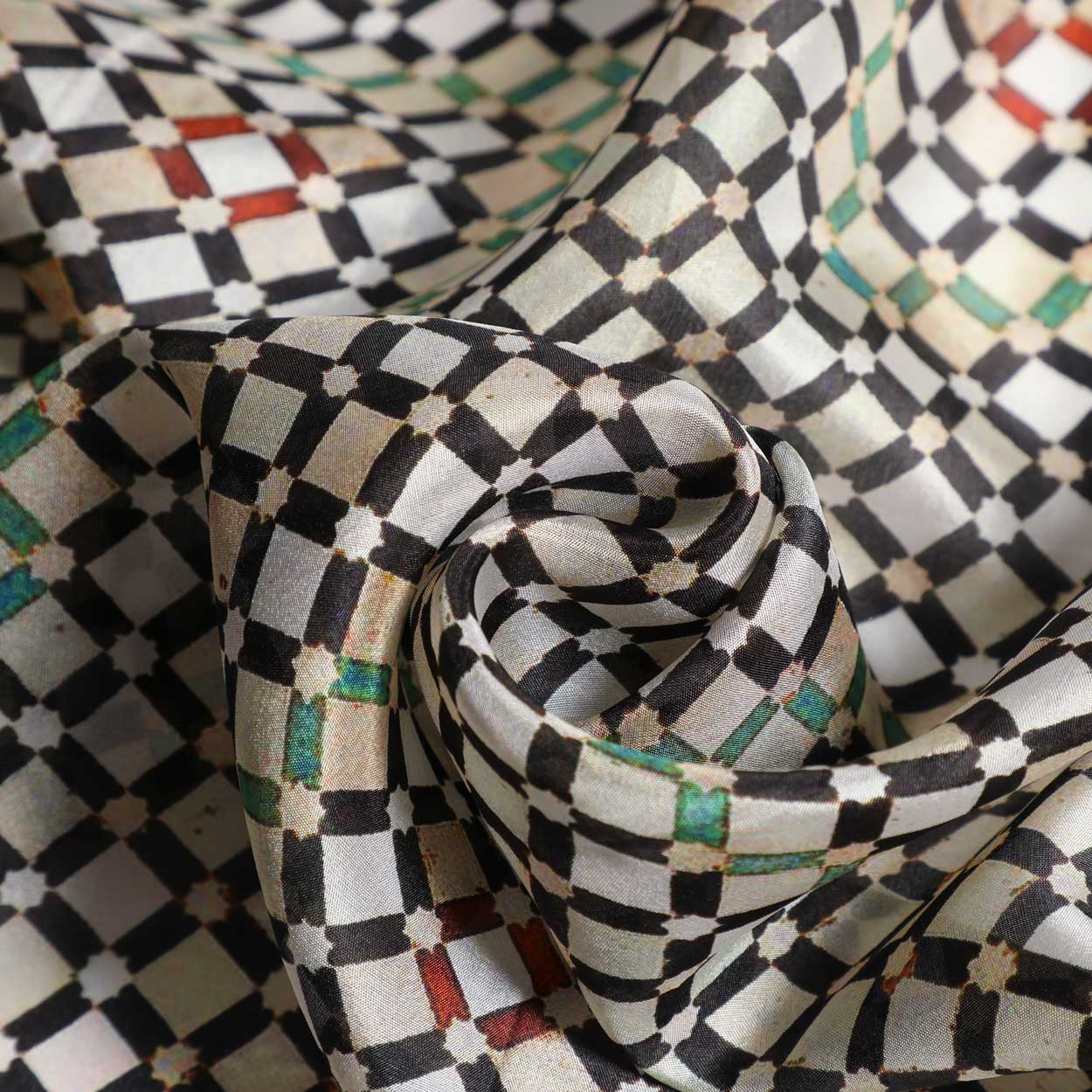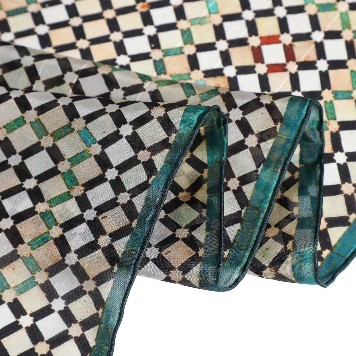 Silk scarf inspired by mosaics and tiles from Islamic art.
