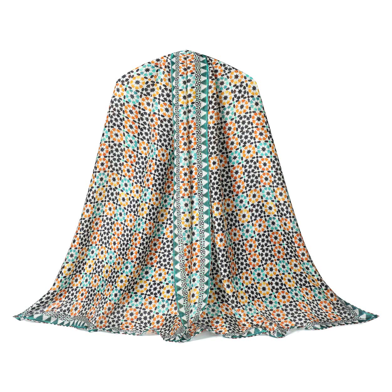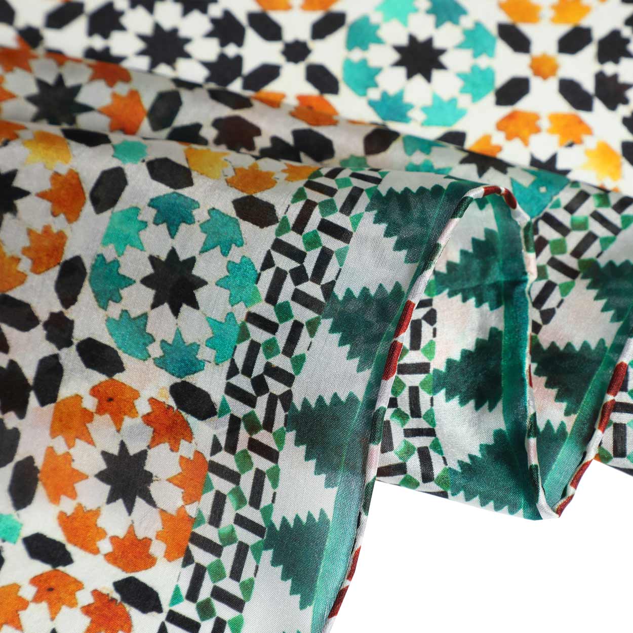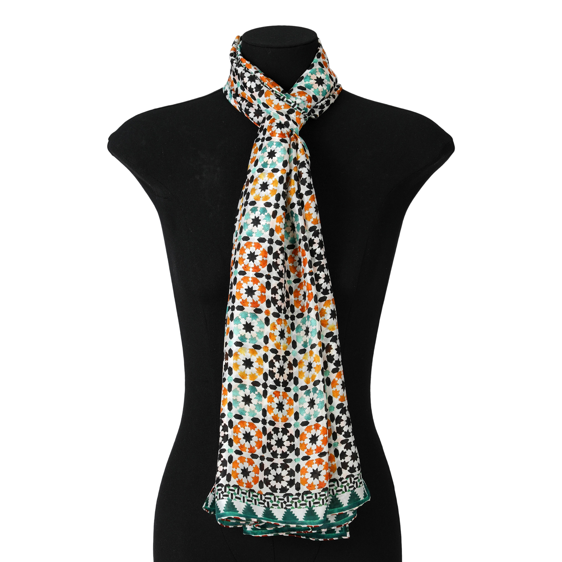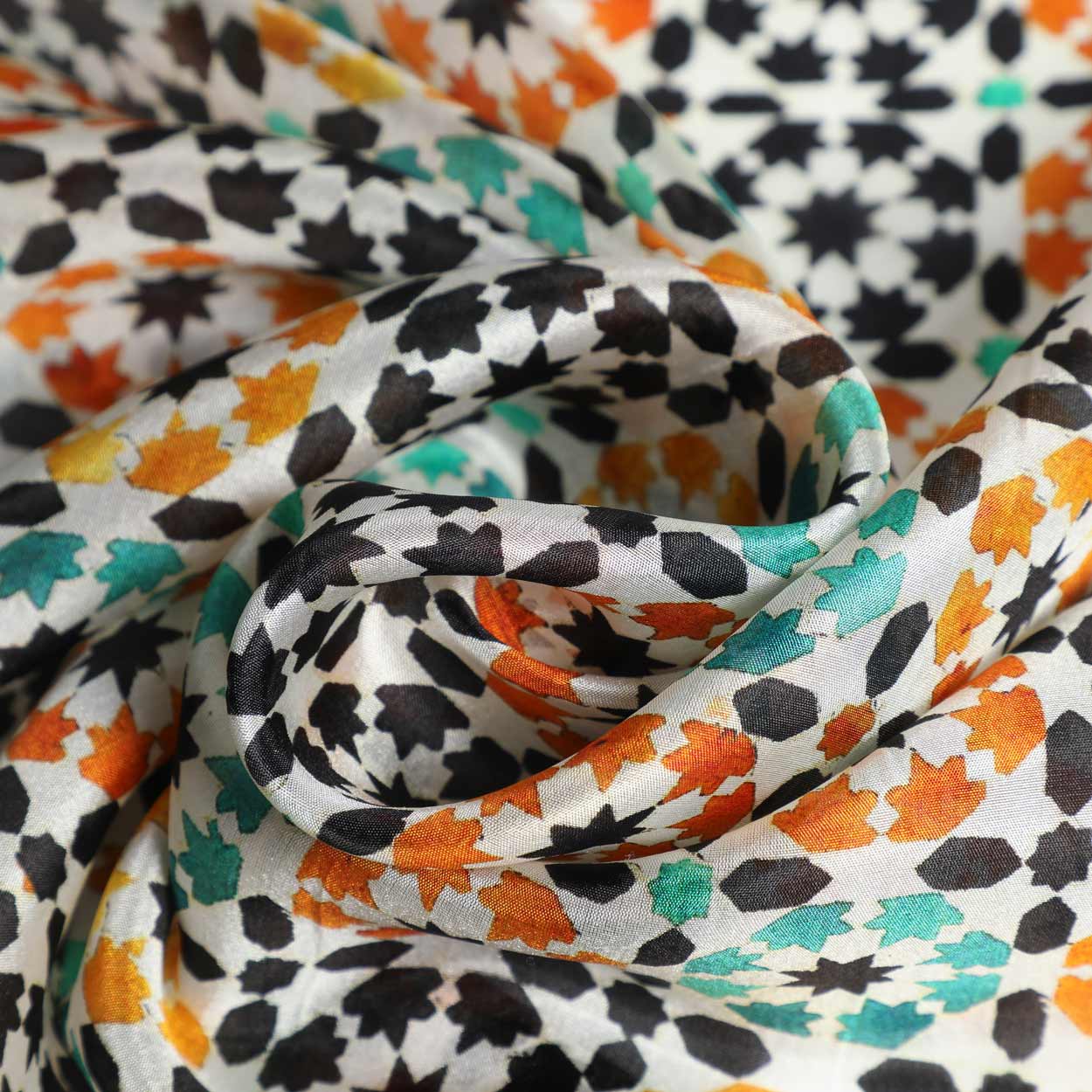 Silk scarf inspired by mosaics and tiles from Islamic art.