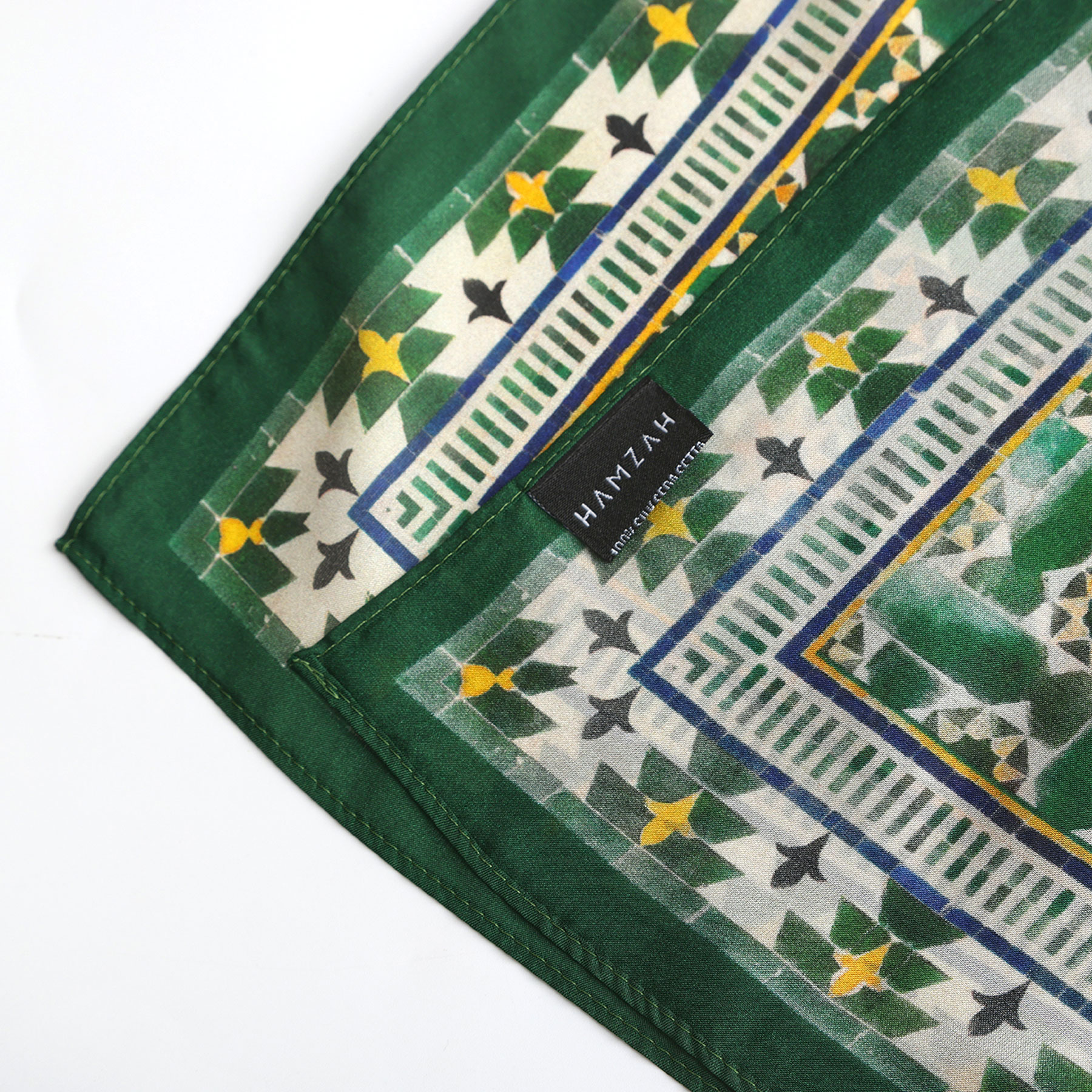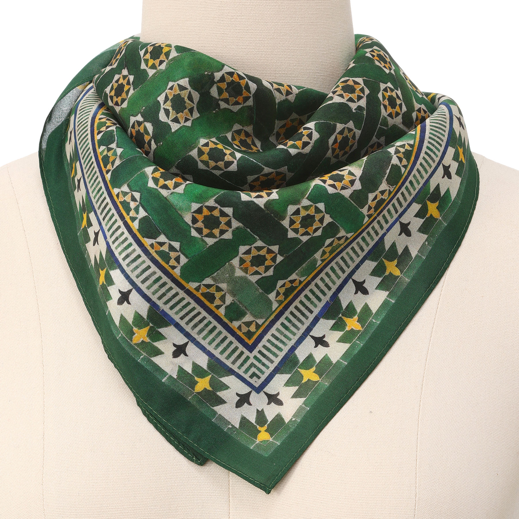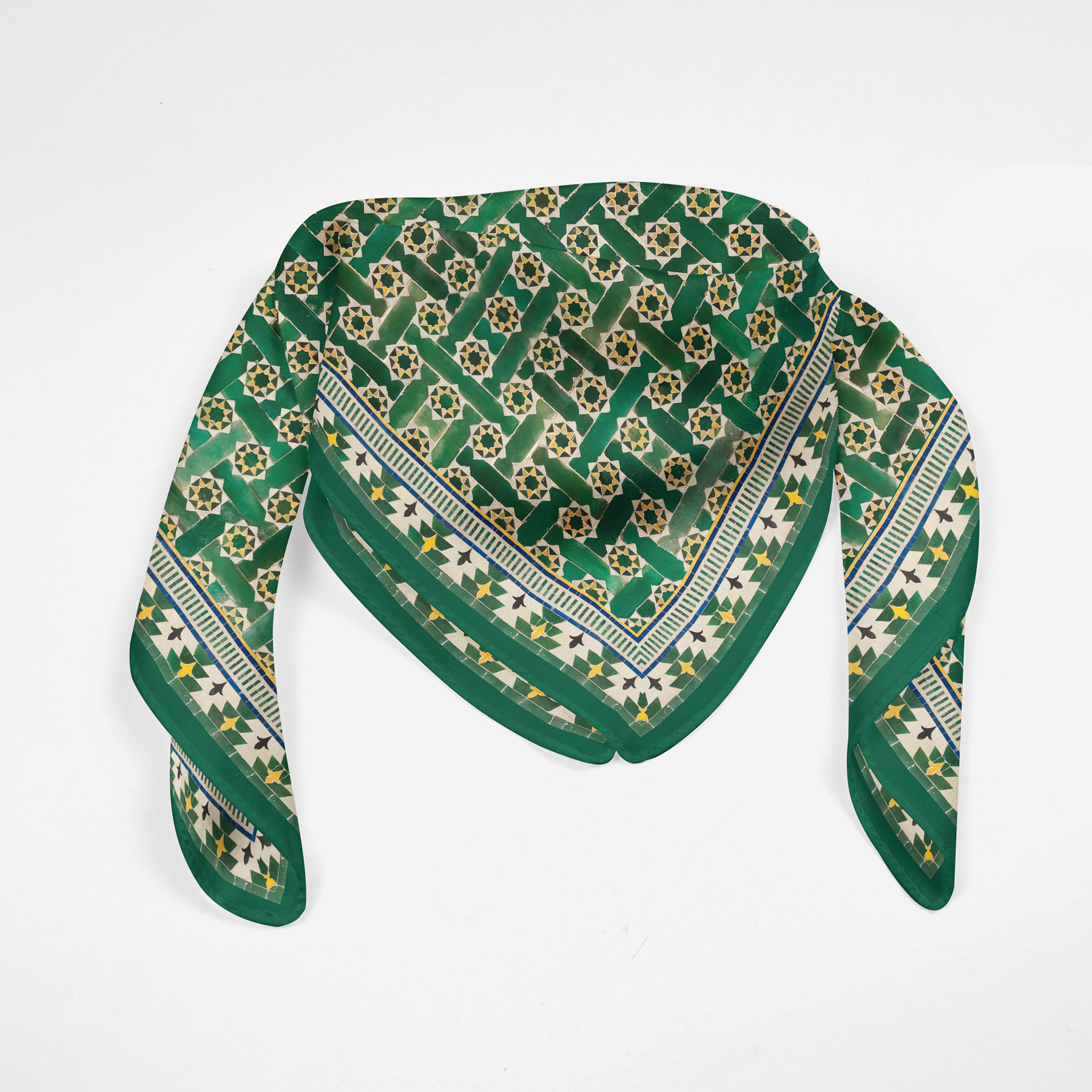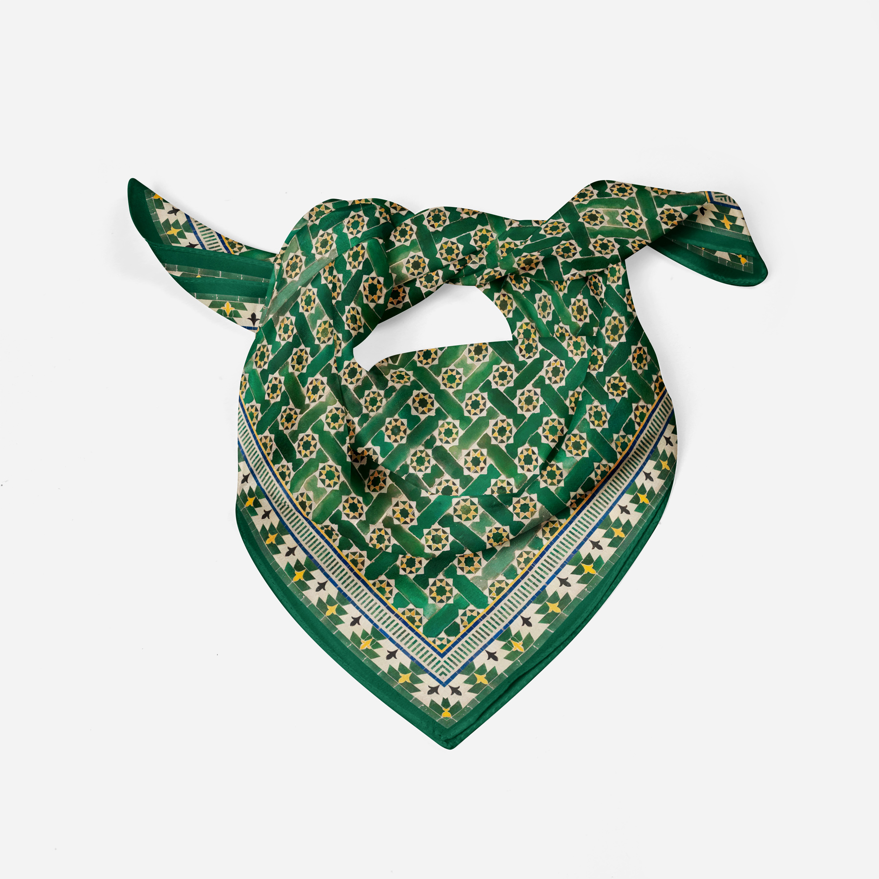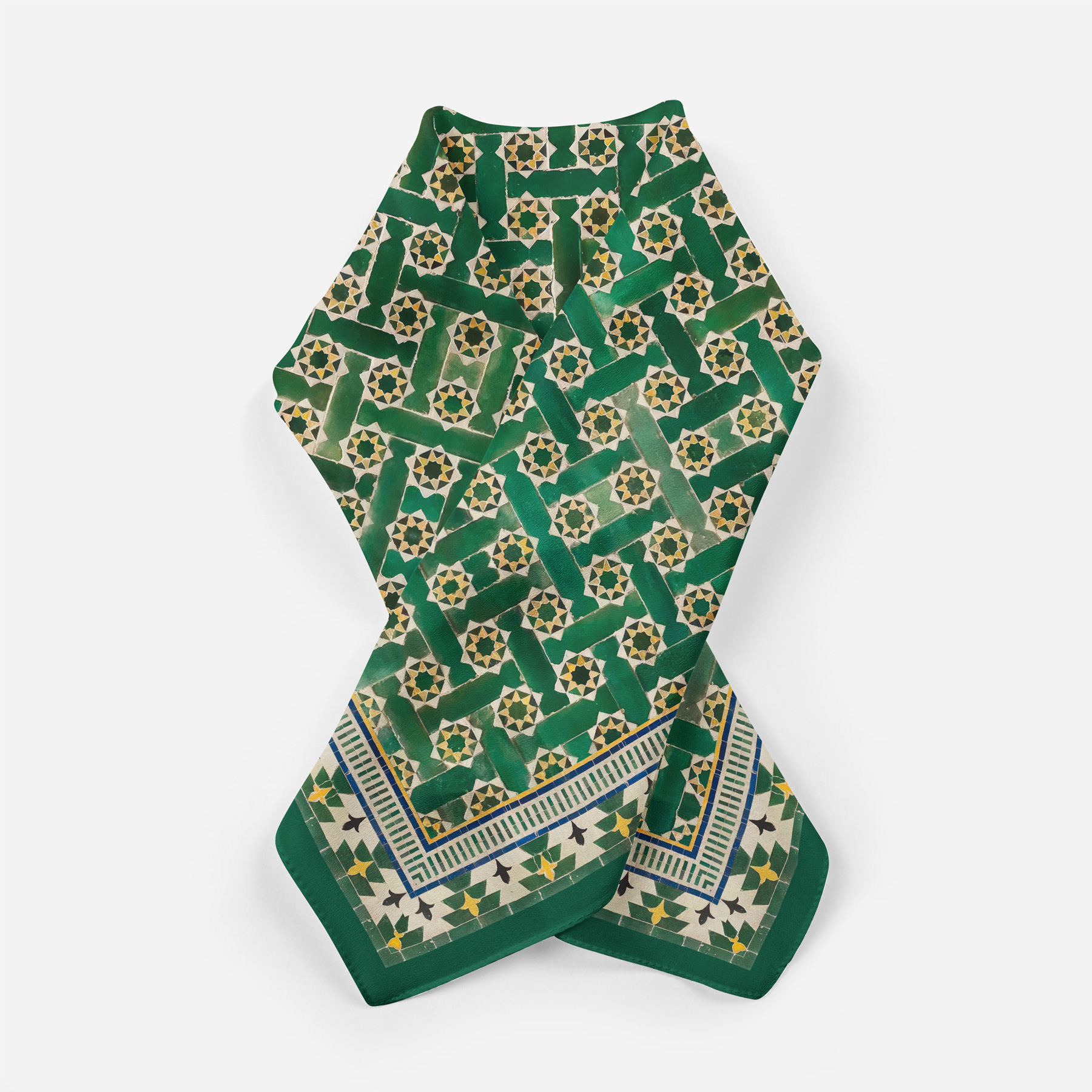 Pañuelo de seda habotai inspirado en los azulejos del mundo oriental conocido como arte islámico.