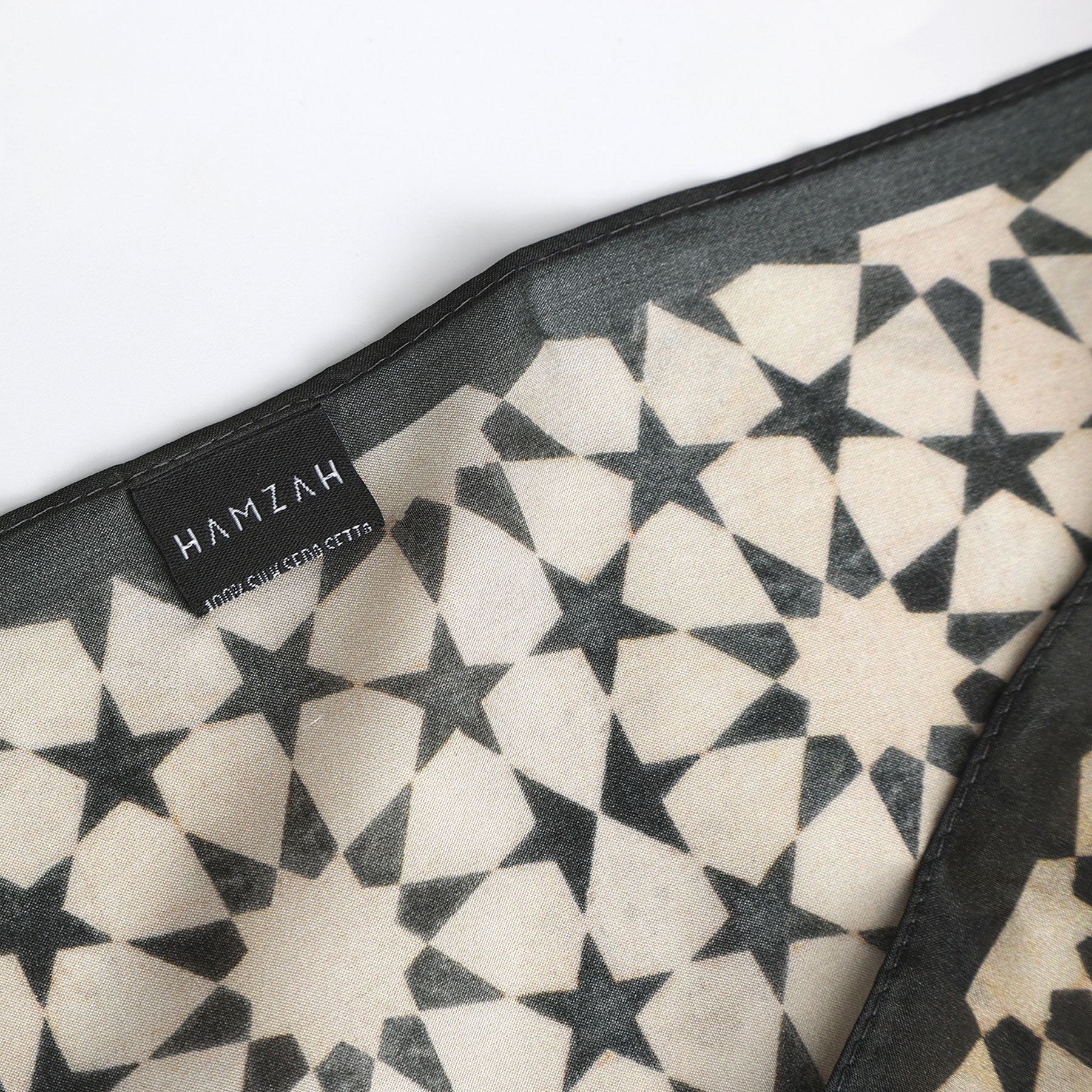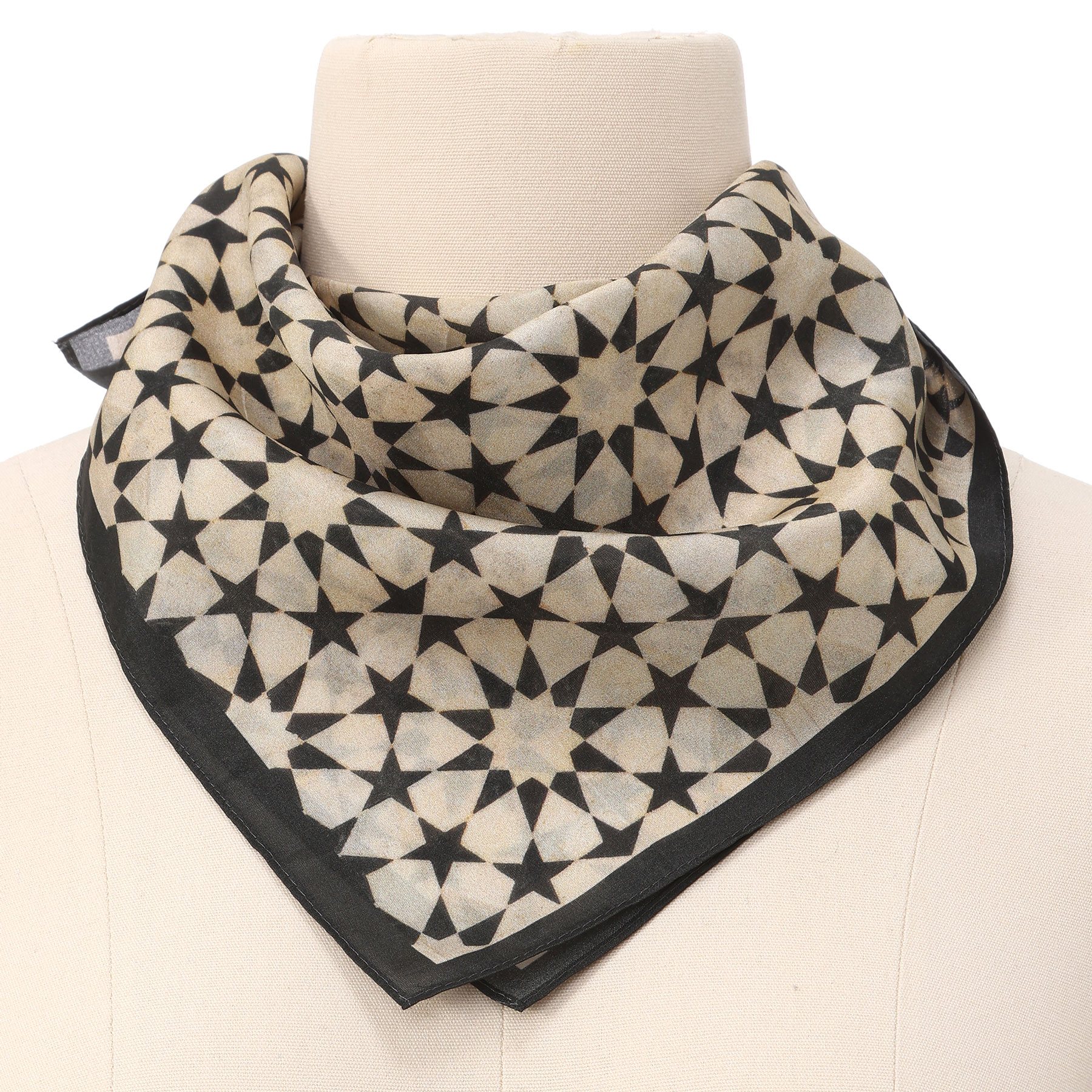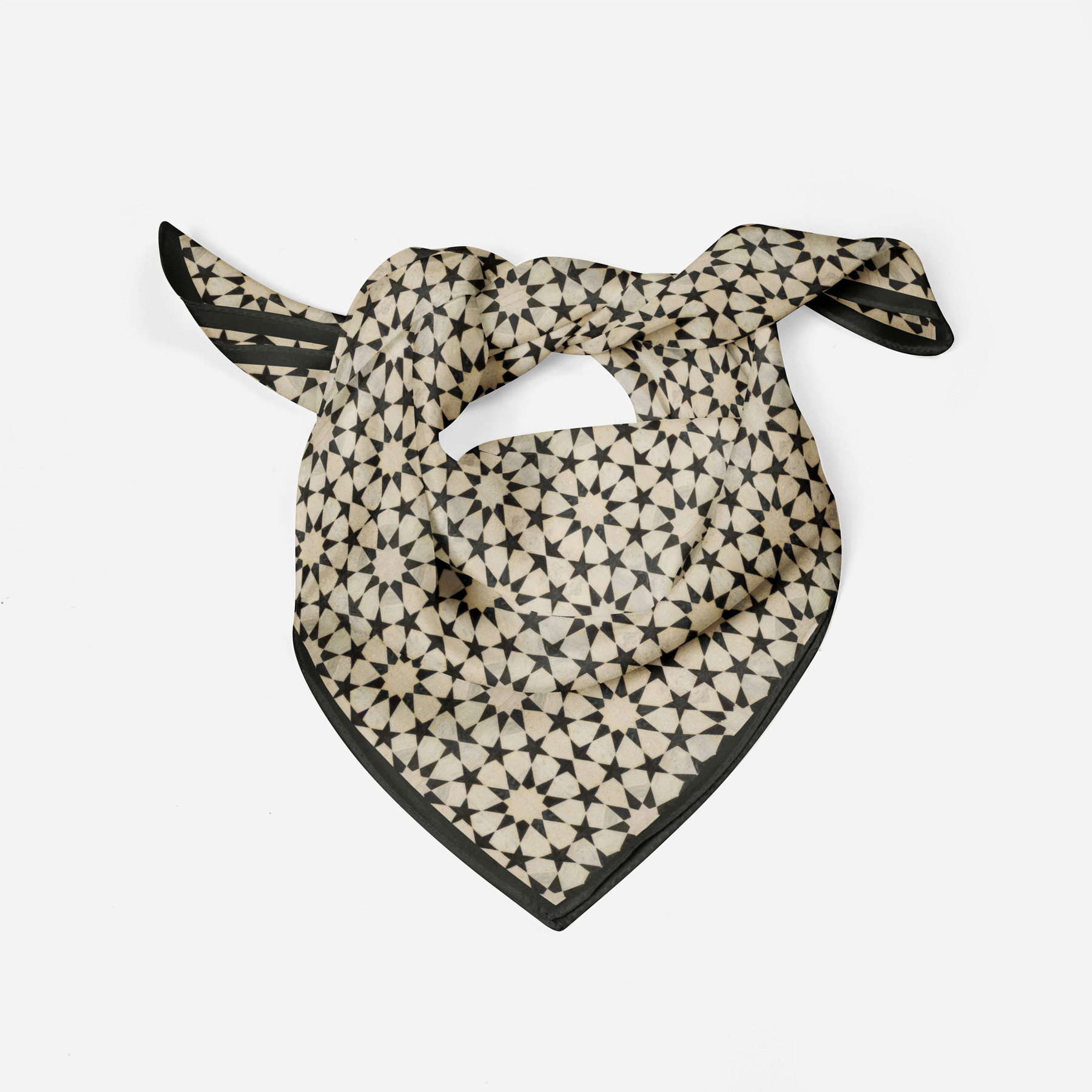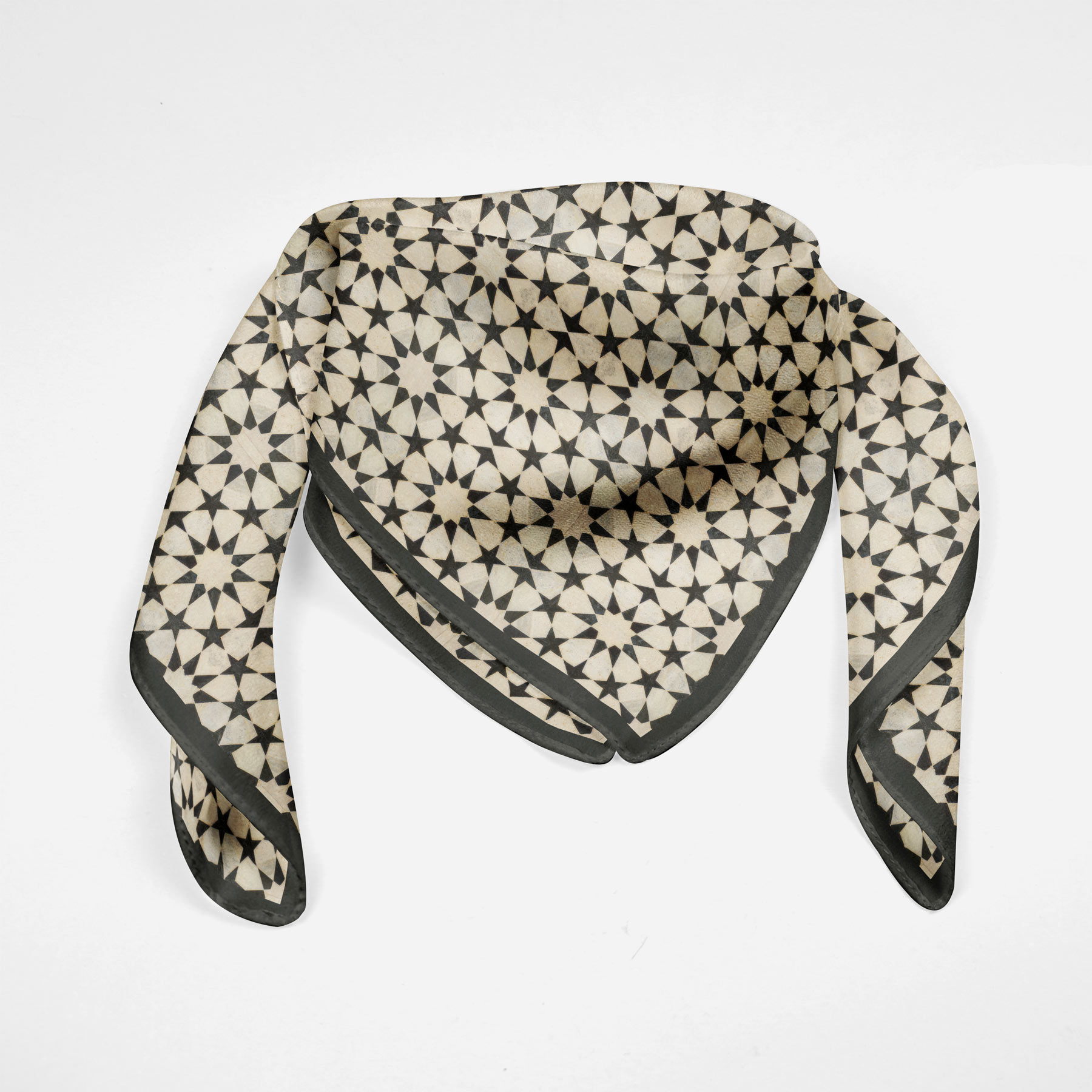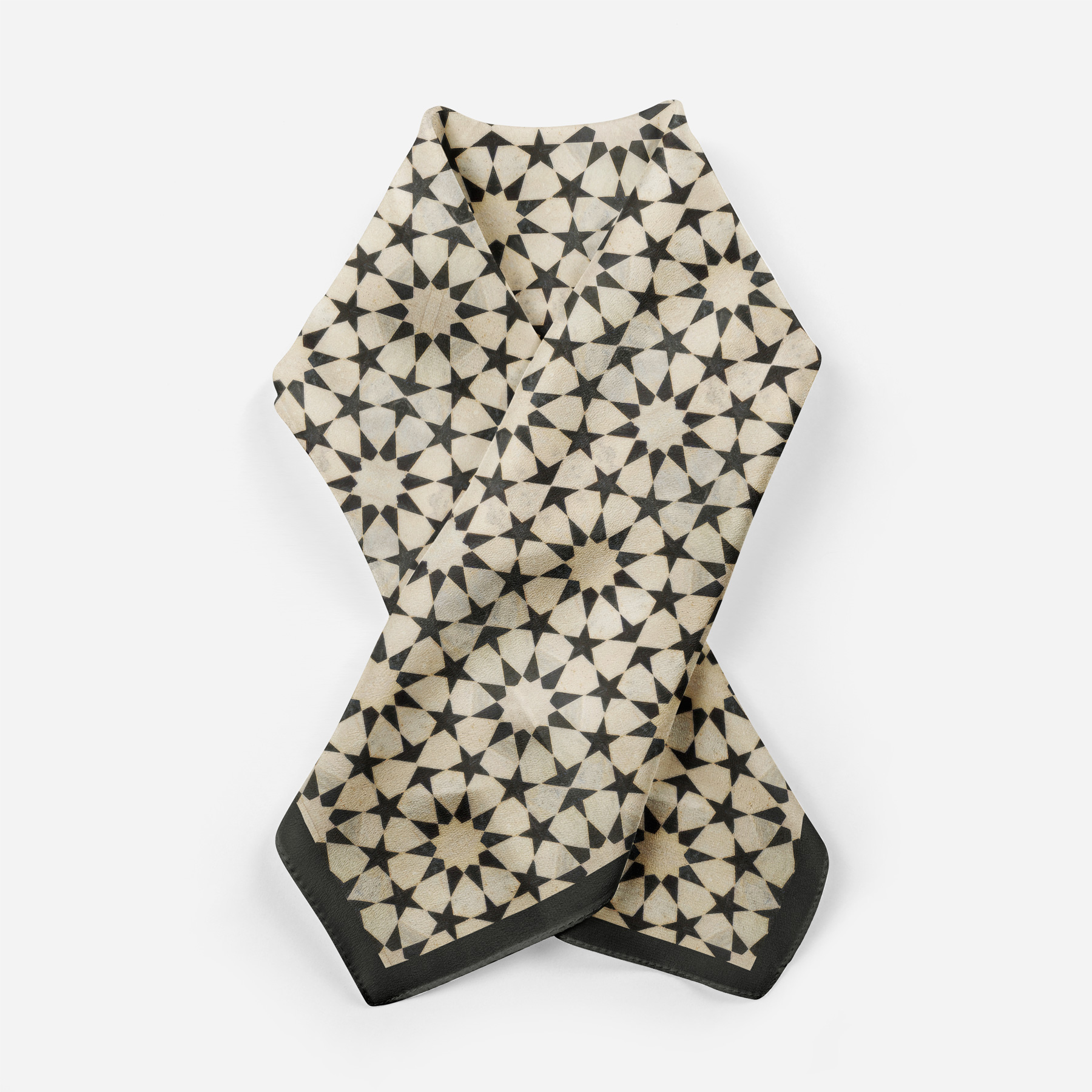 Pañuelo de seda habotai inspirado en los azulejos del mundo oriental conocido como arte islámico.