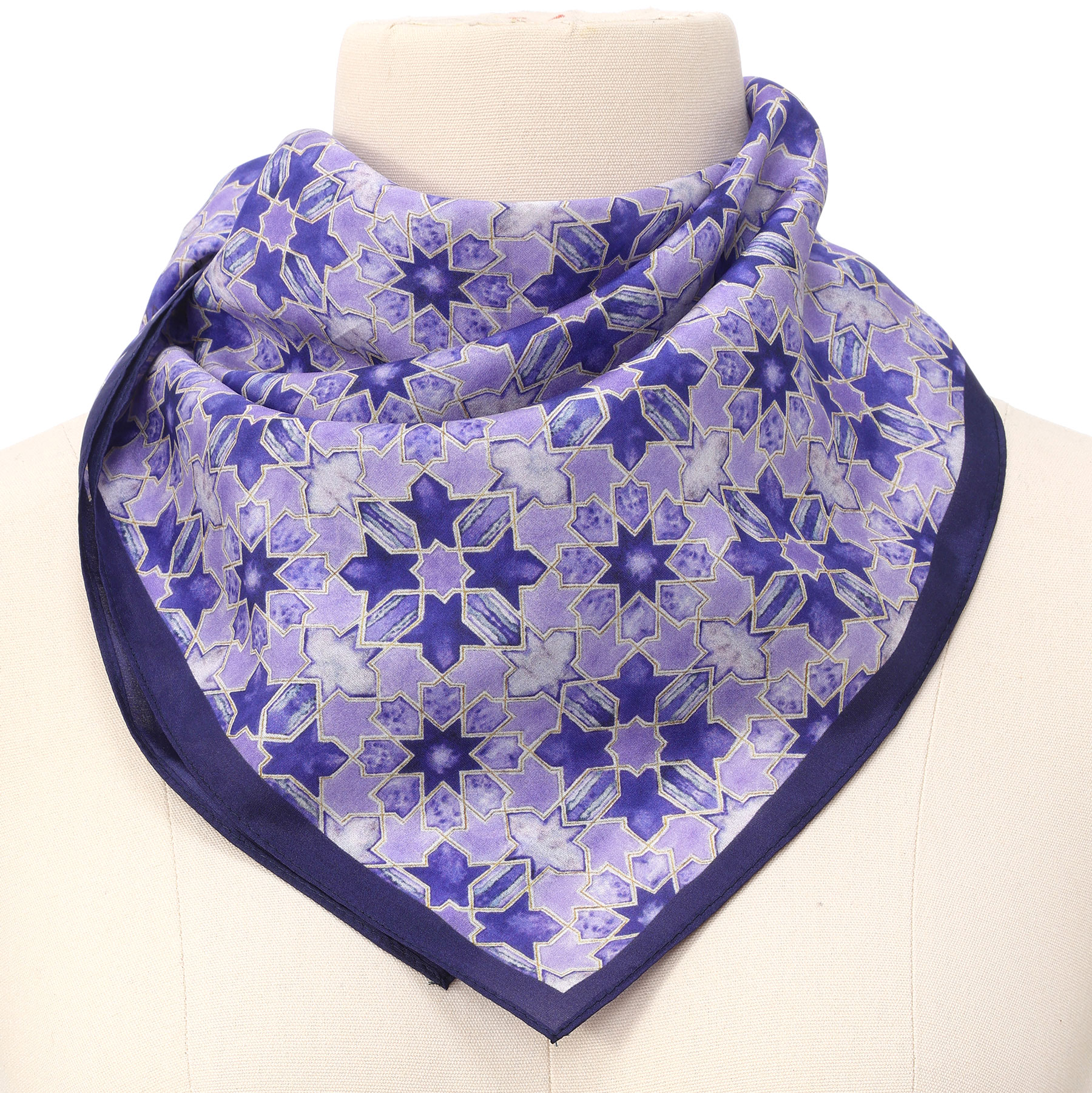 Pañuelo de seda habotai inspirado en los azulejos del mundo oriental conocido como arte islámico.