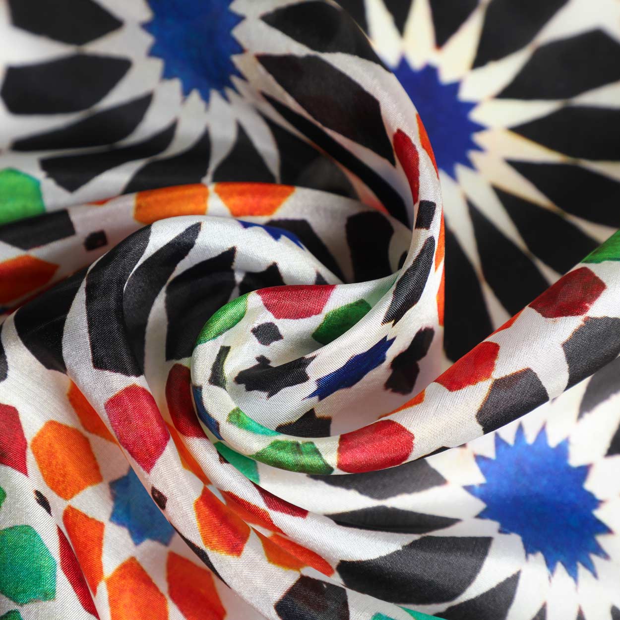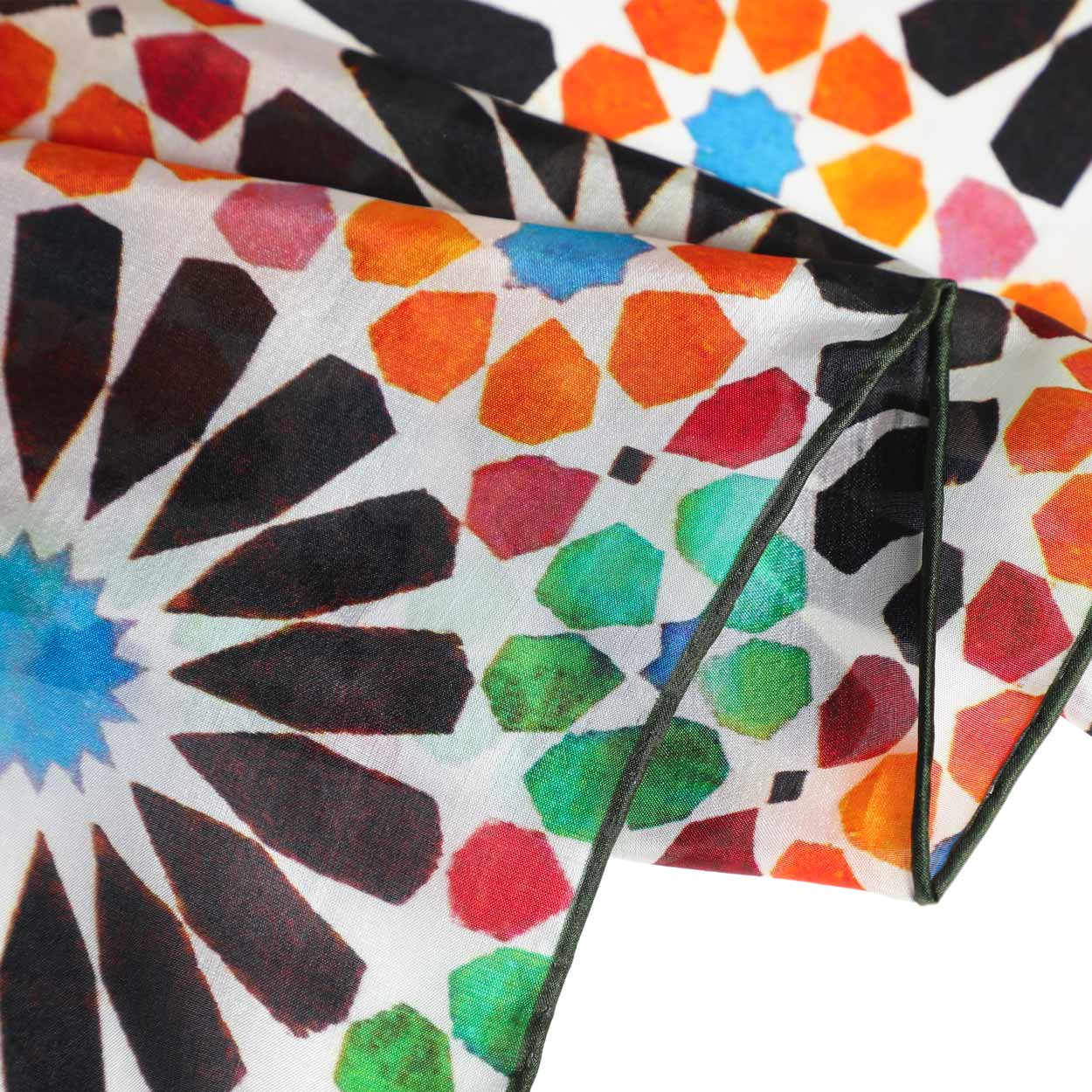 Pañuelo de seda inspirado en los mosaicos y azulejos del arte islámico.