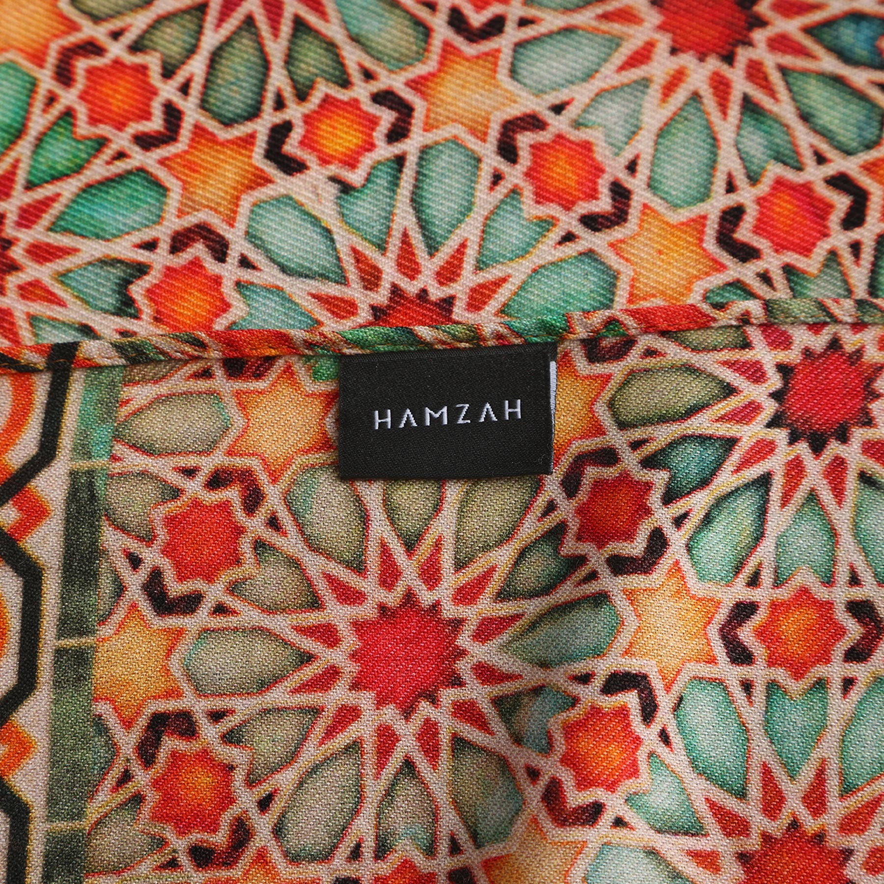 Pañuelo de seda y lana inspirado en los azulejos del mundo oriental conocido como arte islámico.