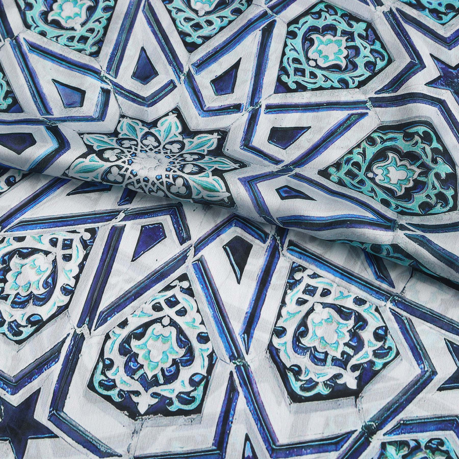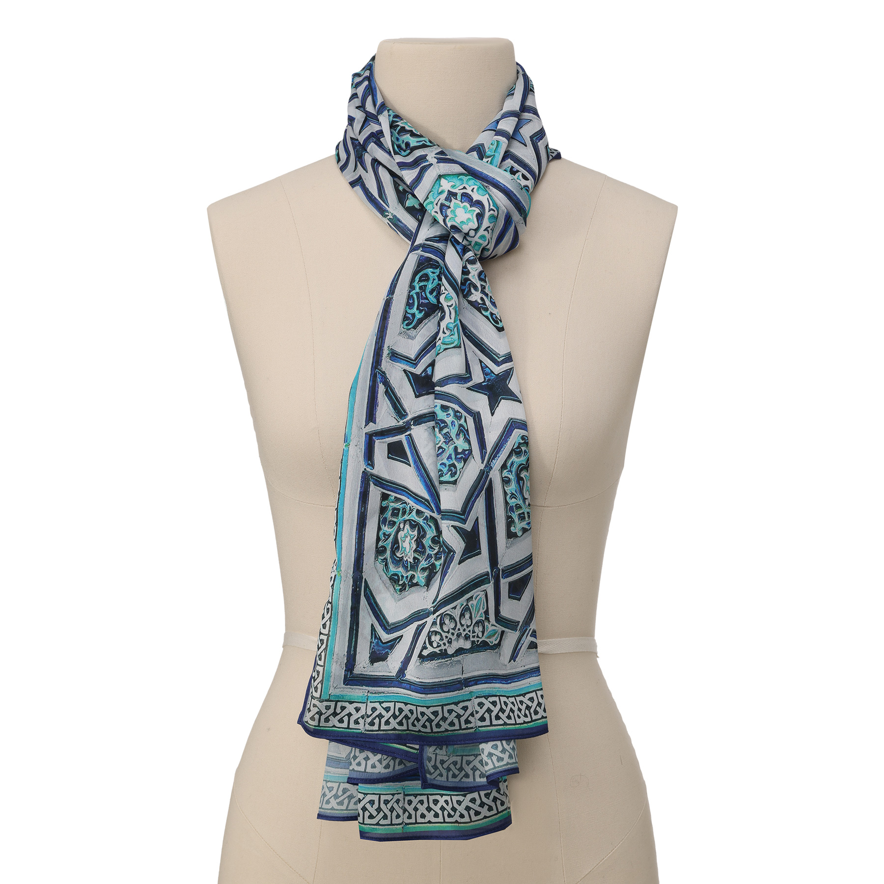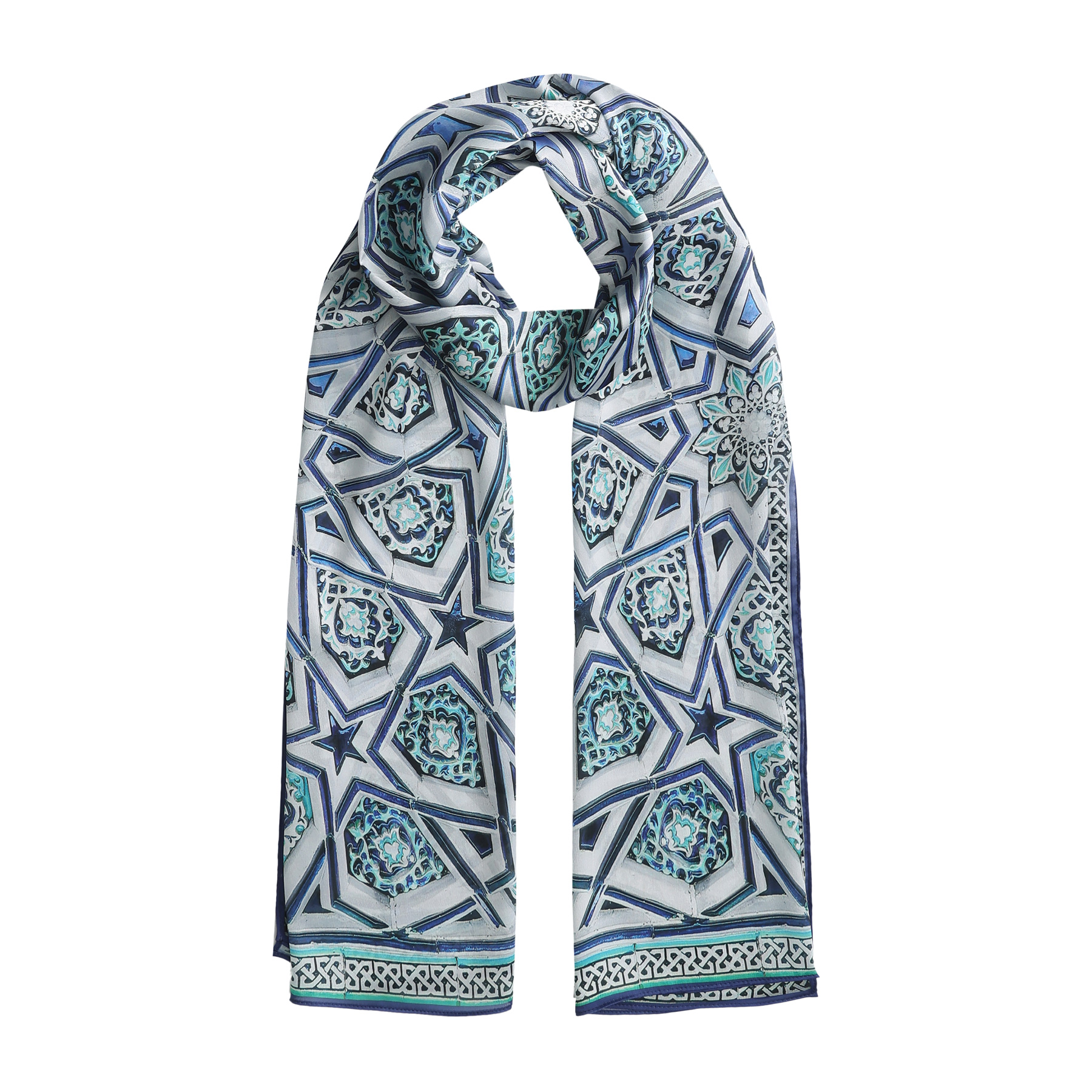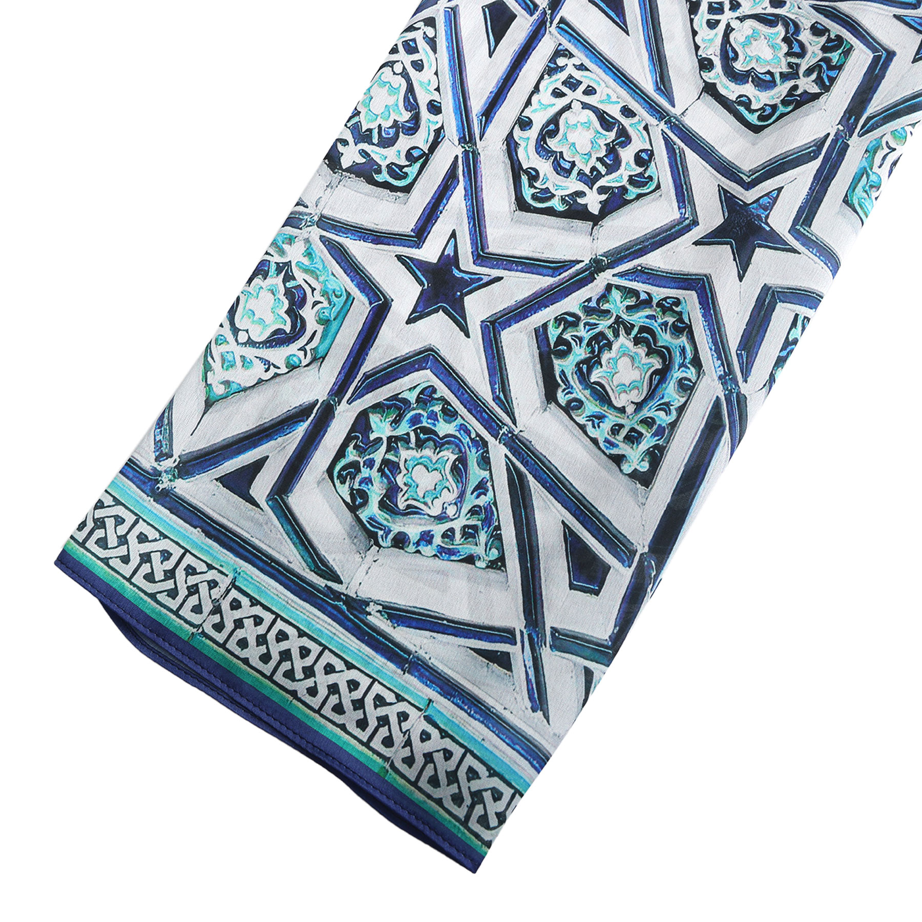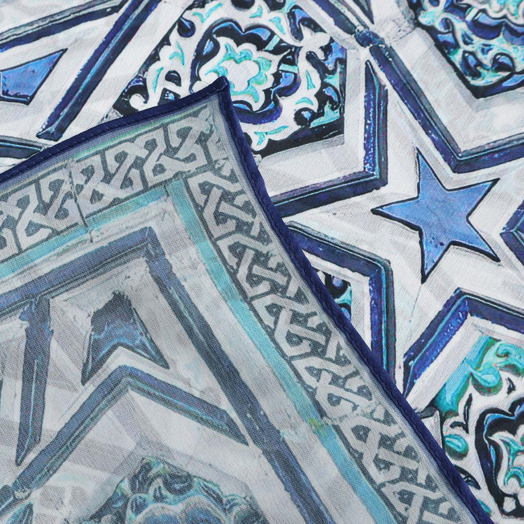Pañuelo Seda Alcazaba Azul - Pañuelos Habotai Arte Islámico 180x65 | Mayoristas Munira Pañuelo Seda Alcazaba Azul - Imagen 2
